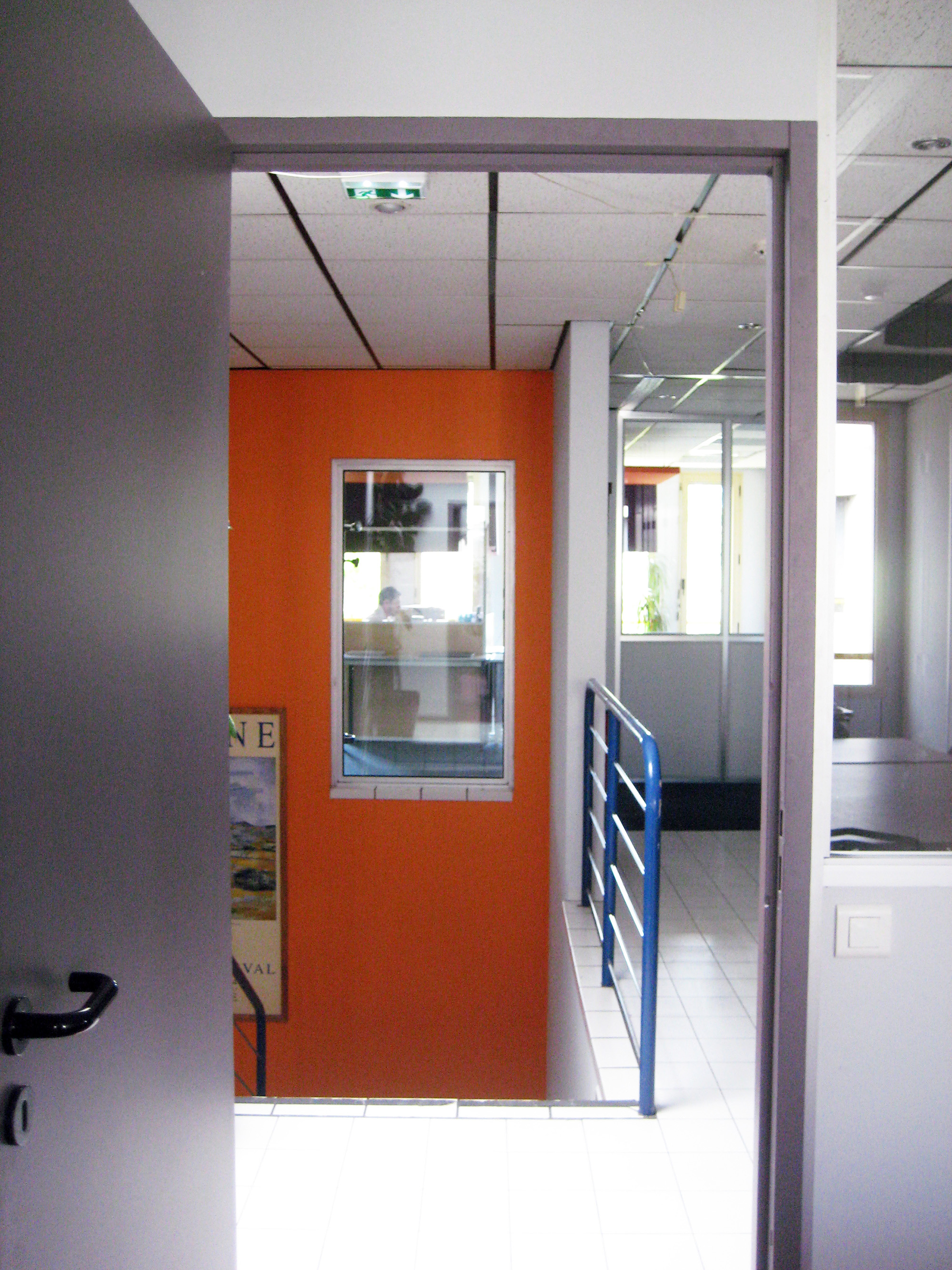 Suivant les volontés du directeur, il s’agit de créer des bureaux plus ouverts, style open space, d’aménager une salle de réunion, d’améliorer les circulations, de restaurer les sanitaires et de créer de nouveaux bureaux. Le réaménagement en open space nécessite un travail sur l’acoustique des locaux. Afin de garder une libre circulation, seuls des panneaux absorbants seront mis en place autour de chaque poste de travail.